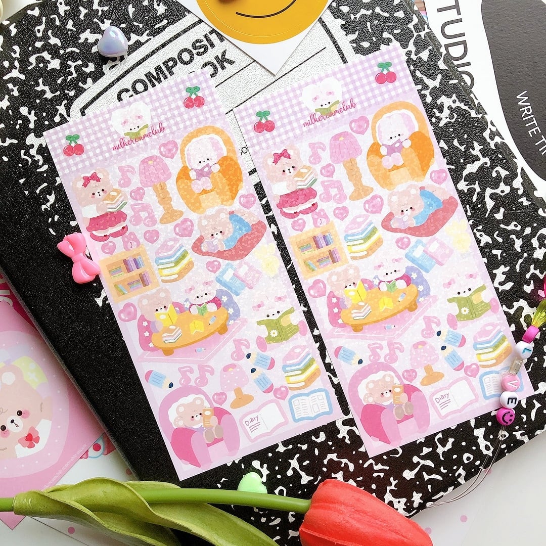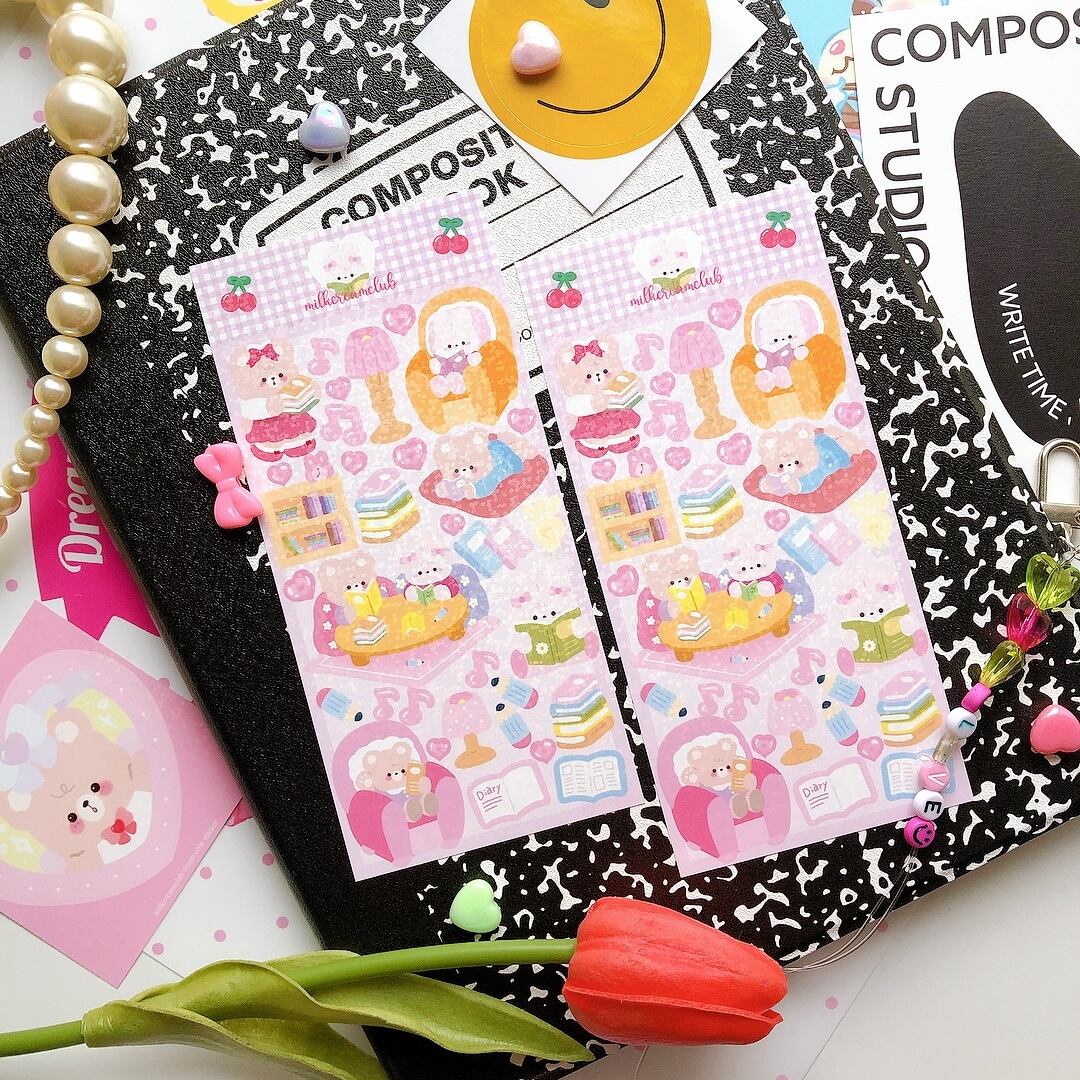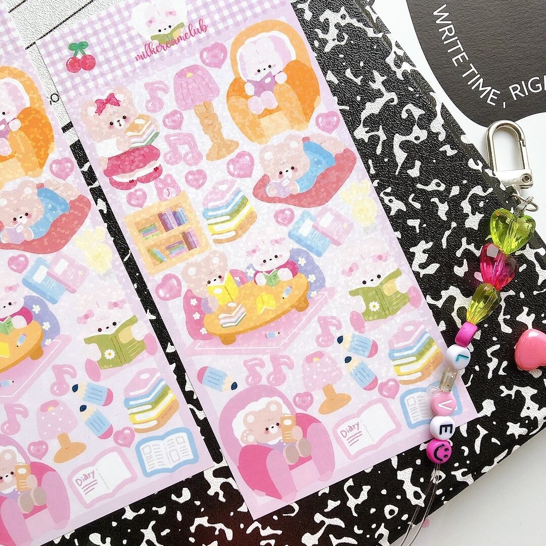 ✿ water resistant kiss-cut holo sparkle removable sticker sheet